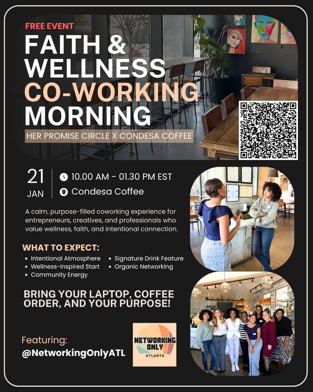 January 21st 10:00 AM at Condesa Coffee - HPC x Condesa Coffee: Faith & Wellness Co-Working Morning by Her Promise Circle