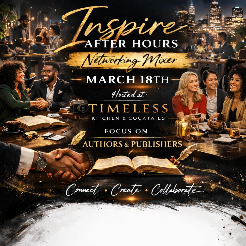 Join Networking Only ATL and Inspire Atlanta every third Wednesday of the month for Inspire After Hours Networking Mixer: Authors & Publishers Night. Each month features a Spotlight Guest to help inspire others and this year we will be highlighting Authors 📚